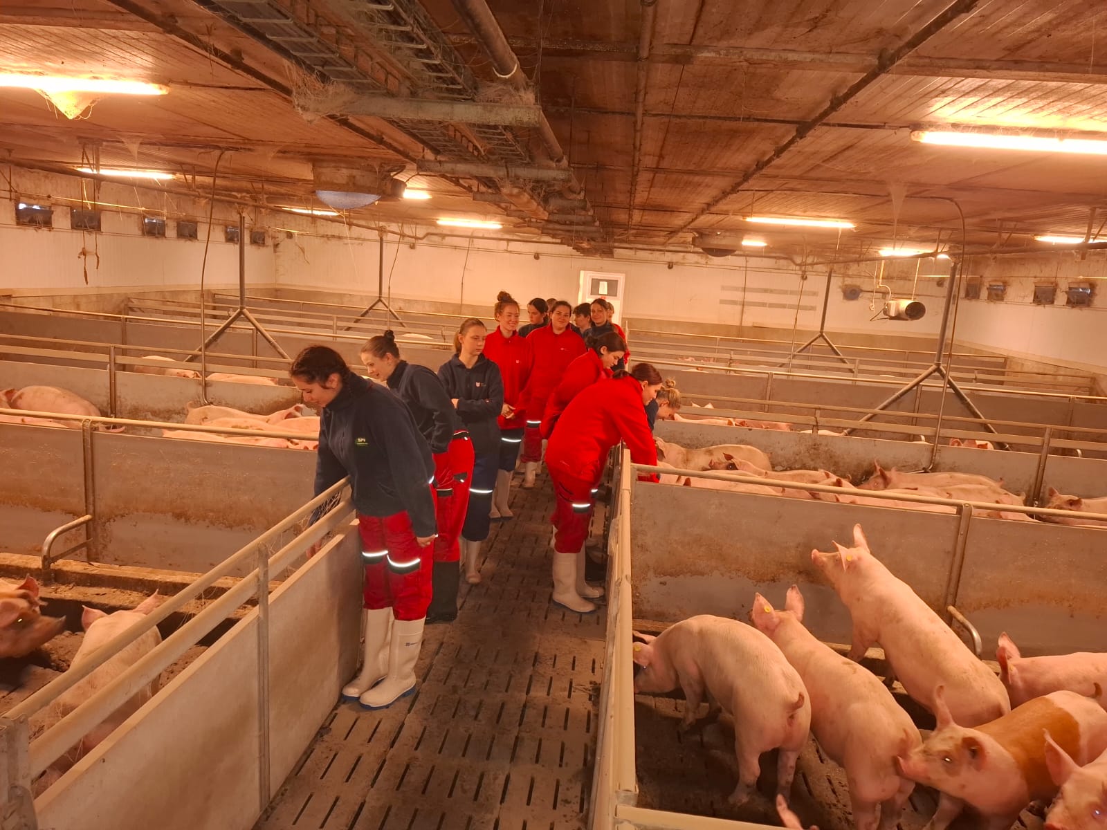 Dopolední program byl věnován komentované prohlídce reprodukčního chovu prasat. Studenti rozdělení do skupin měli jedinečnou možnost prohlédnout si špičkové technologie a moderní přístupy k chovu, včetně welfare porodních kotců FT-15 vyvinutých společností Farmtec a automatických krmných boxů pro prasnice. Prohlídku vedli zkušení odborníci přímo z farem. Účastníci tak získali cenné praktické informace přímo v provozu.